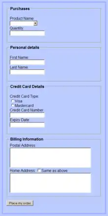 - Note that fieldsets are being used to group the form fields.